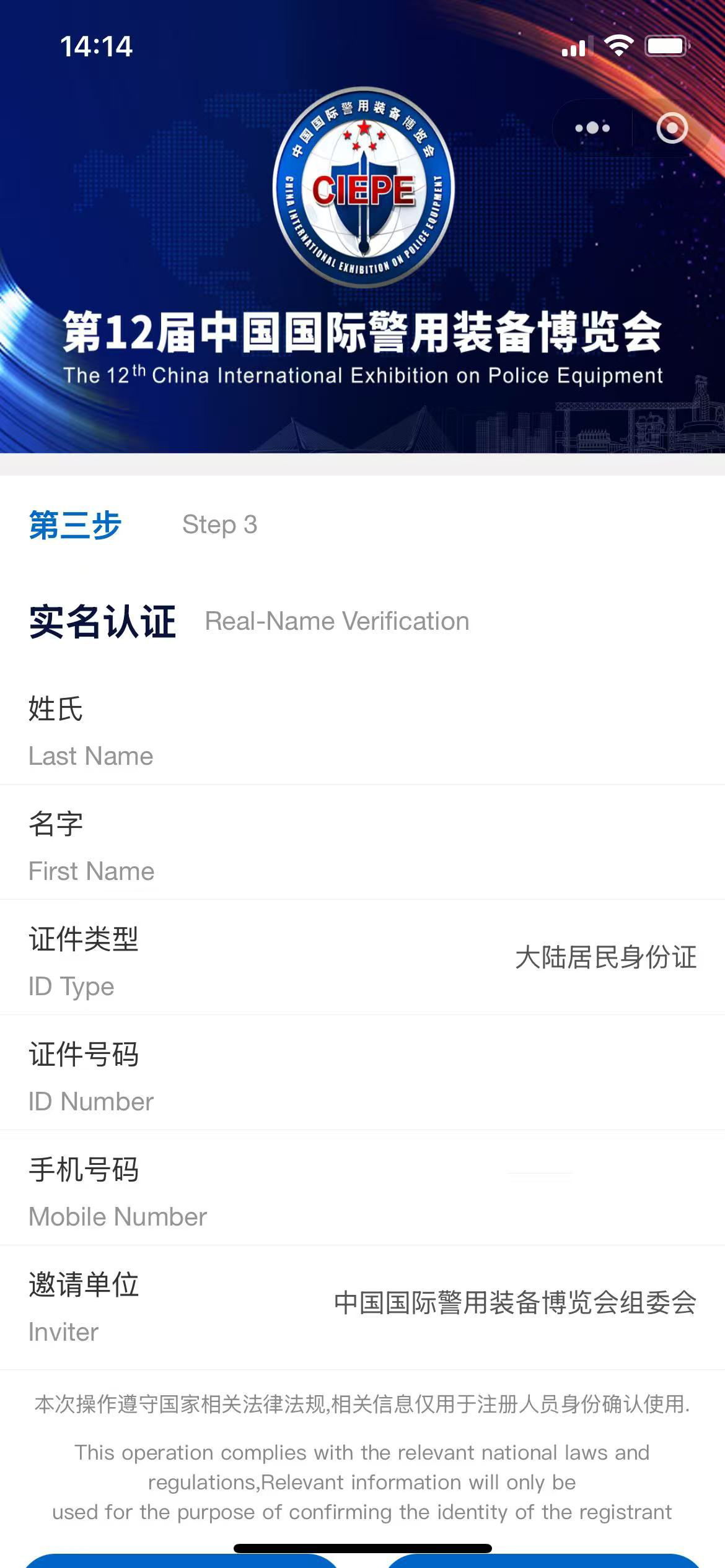 本届展会采取邀请码注册制,只有通过审核的观众才能入场参观。扫描下方官方二维码,进入小程序输入龙信科技邀请码:frfihv进行注册。申请时需提供真实身份证信息(姓名、身份证号、手机号等)
